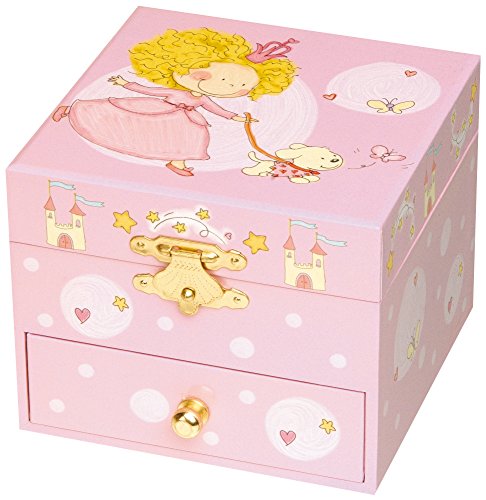UNE BOÎTE MUSICALE POUR RANGER SES BIJOUX : Cette boîte à musique en forme de cube et disposant d’un tiroir émerveillera une jeune fille qui y rangera ses bijoux & secrets. Actionnez la manivelle et la figurine Princesse s’anime comme par magie au son de la musique !