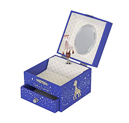 UNE BOÎTE MUSICALE POUR RANGER SES TRESORS : Cette boîte à musique en forme de cube et disposant d’un tiroir émerveillera l’enfant qui y rangera ses trésors. Actionnez la manivelle et la figurine Sophie la Girafe s’anime comme par magie au son de la musique !