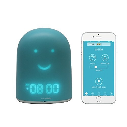 REMI rassemble en un seul objet tous les outils dont les parents ont besoin pour bien prendre soin du sommeil de leurs enfants. Pour le bébés dès la naissance : c’est un babyphone audio, écoute bébé qui fonctionne partout, où que vous soyez, avec une connexion audio sécurisée et d’excellente qualité. Vous pouvez également parler à votre bébé à distance pour le rassurer grâce au mode talkie-walkie. C’est aussi un outil de suivi pour les parents : grâce à ses capteurs de son, température et luminosité, REMI vous permet de suivre l’historique des nuits de votre bébé et ainsi de mieux comprendre et identifier les conditions les plus favorables à son sommeil. Pour rassurer bébé, REMI est aussi une veilleuse et peut jouer des berceuses. Pour les enfants qui grandissent mais ne savent pas encore lire l’heure, REMI devient un réveil enfant éducatif jour nuit qui les aide à mettre en place des routines régulières de coucher et de lever avec leurs parents : en quelques clicks sur l’application, vous réglez très précisément les horaires de lever et de coucher en fonction du rythme hebdomadaire de votre enfant, et votre enfant saura s’il peut se lever ou s’il doit rester au lit ou aller se coucher grâce à l’expression du visage de REMI. Même fonction Sleep trainer que Claessens Kids, Kid sleep, Gro Clock, ZAZU, Onaroo, reveil Miffy avec toute la flexibilité d’une application. Vous pourrez même dormir un peu plus tard le week end. Pour les enfants plus grands, REMI devient réveil matin, et enceinte à musique : REMI peut jouer de la musique en streaming depuis un smartphone ou une tablette, et vous pouvez également enregistrer les morceaux préférés de votre enfant dans la mémoire de REMI pour qu’il ou elle puisse les écouter sans avoir à utiliser de smartphone ou tablette. REMI est un véritable compagnon du sommeil, pour tous les enfants de 0 à 10 ans. REMI Bleu Pantone 631C.Réveil éducatif jour nuit qui grandit avec l’enfant : devient coach du sommeil grâce aux expressions du visage de REMI pour indiquer à l’enfant quand il peut se lever et quand il doit rester au lit ou aller se coucher. Même fonction Sleep trainer que Claessens Kids, Kid sleep, Gro Clock, ZAZU, Onaroo, réveil Miffy avec la flexibilité d’une application !