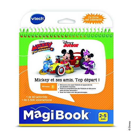 Ce jeu tiré de l’univers du dessin animé Mickey et ses amis a pour nom officiel : V Tech – MagiBook – Le travail en équipe avec Mickey et ses amis !.