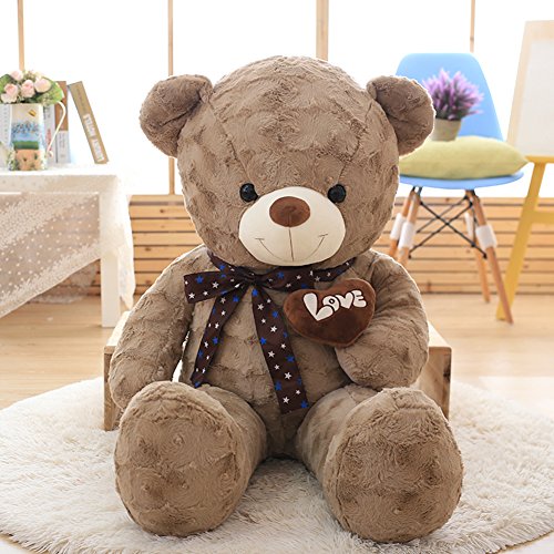 VERCART Jouet Enfant Ours en Peluche Nounours avec Coeur Love Teddy Bear Cadeau Anniversaire pour Ami Copine Brun Foncé 100cm