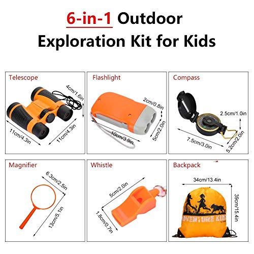 ❤ NICE KIT D’EXPLORATION: le kit d’exploration 6 en 1 peut satisfaire la curiosité des enfants pour la nature. Cet ensemble éducatif comprend: des jumelles, une lampe de poche, une boussole, une loupe, un sifflet et un sac à dos, procurant un grand plaisir et encourageant l’exploration scientifique des enfants.