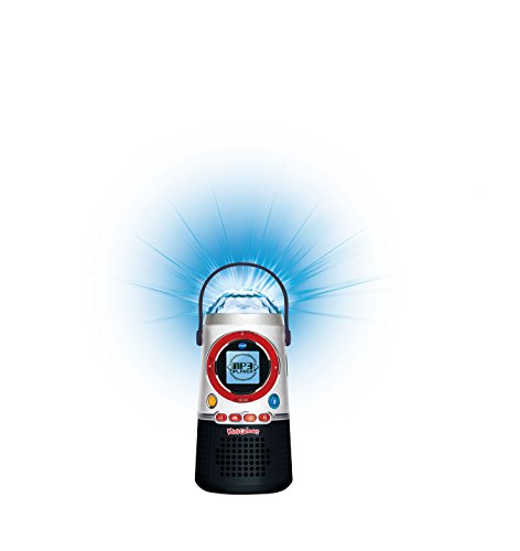 Vtech Kidi Concert is portable Bluetooth speaker that features 8 functions such as colour changing light and voice changing effects! Connect your music player via Bluetooth or the cable jack included to listen to your own music and press the light projector button to create your very own in home disco! The LCD screen allows you to set the time and alarms, great for parties you do not want to miss.The Kidi Concert features popular party games such as Musical Chairs so that you and your friends can have a blast! With plently of built-in dance songs and sing-along songs, the Kidi Concert is a fantstic easy to carry, interactive speaker children will just love. Features Listen to your favourite songs through the built-in speaker Listen to your favourite radio station or dance around the room to built-in dance songs and 5 sing-along songs LCD screen to set time and alarm Audience sound effects Voice recorder Colour changing lights Bright and colourful disco light synchronises with the music and lights up the room while you dance Play your mp3 songs through the included 3.5mm jack or via a microSD (not included) Party games include Musical Chairs, Charades and more Includes Bluetooth function for streaming your music from your phone Small and compact, easy to carry with carry handle Batteries required: 4xAAA Suitable for ages 6 years+kidi concert est le haut-parleur portable Bluetooth pour les enfants.