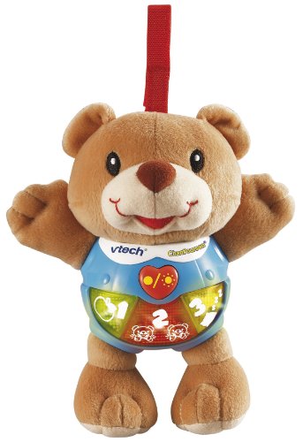 Descriptif produit : Un hochet musical et lumineux avec tête et petites pattes en tissu tout doux.Un ourson tout doux pour des câlins en musique!Bébé découvre les émotions: être content, avoir faim, avoir sommeil…3 boutons musicaux et lumineux pour éveiller Bébé.Des effets sonores de bisous.Corps en plastique, tête et pattes en tissu tout doux.S’attache, au lit au parc ou à la poussette grâce à sa sangle en tissu.6 mélodies et 1 chanson.Existe également en versions bleue et rose.