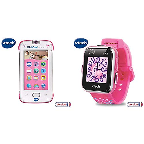 VTech – KidiCom Max Rose – Smartphone pour Enfant évolutif, Ultra résistant, sécurisé, avec Appareil Photo intégré & Kidizoom Smartwatch Connect DX2 – Rose – Montre Connectée pour Enfants