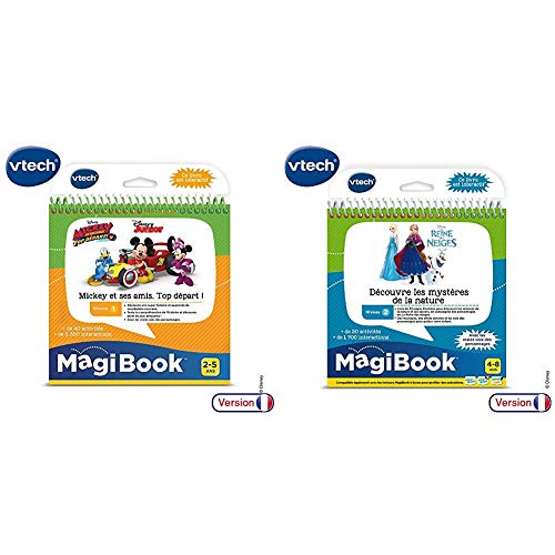 Ce jeu tiré de l’univers du dessin animé Mickey et ses amis a pour nom officiel : VTech – MagiBook – Le Travail en équipe avec Mickey et Ses Amis ! & Livre MagiBook – La Reine des Neiges – Découvre Les mystères de la Nature, Livre éducatif.