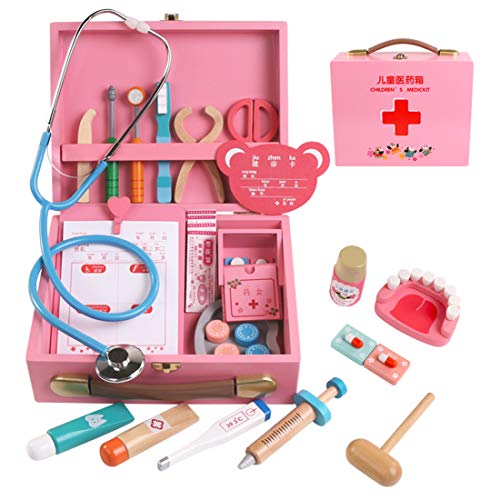 Yavso Malette Docteur Enfant, Lot de 34 Mallette Docteur en Bois Jouet Docteur Jeu d’Imitation pour Enfant Fille Garcon