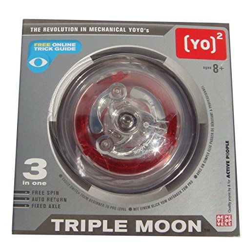 [YO]2 TRIPLE MOON YOYO Le dispositif de commutateur breveté du nouveau YO2 Triple moon vous permet en 1 simple click sur la roue de contrôle de passer du niveau de débutant à professionnel. Il possède à la fois 1 axe fixe, une rotation automatique et libre le tout représenté représenté avec un design fin élégant qui s’adapte parfaitement à vos mains et se glisse facilement dans vos poches et tout cela grâce à sa forme compacte conçue spécialement pour les jeunes débutants. Vous pourrez emporter votre YO2 Triple Moon yoyo partout il progressa en même temps que vous. vous trouverez sur le net : Guide, mode d’emploi et vidéos gratuits des différentes figures que vous pourrez réaliser.