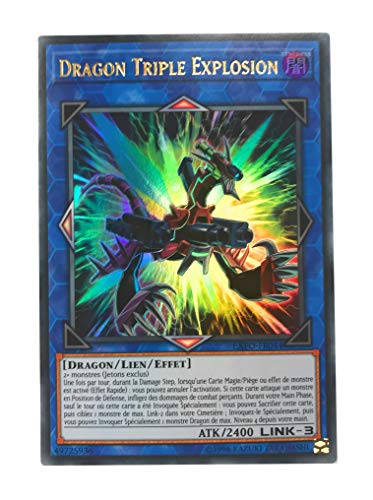 Ce produit tiré de l’univers du dessin animé Les Triplés a pour nom officiel : Yugioh – Dragon Triple Explosion (UR) [EXFO].
