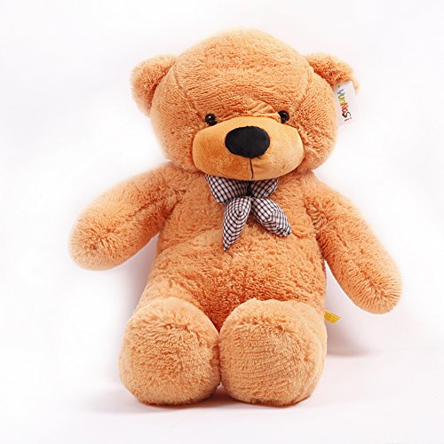 La taille a peut-être une petit d’erreur à cause de la mesure manuelle.Ourson brun clair en peluche de 120cm de long, doux et moelleux.