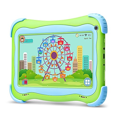 Ce produit dérivé tiré de l’univers du dessin animé Mini-Loup a pour nom officiel : YUNTAB Tablette Q91 7 Pouces Tablette Tactile Enfant 1024X600 HD Resolution 16 Go Android 8.1 A50 Quad Core Bluetooth Google Play Store (Green).