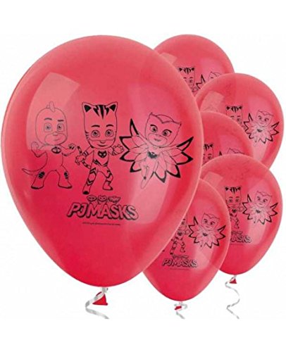 Ce lot sous licence officielle Pyjamasques contient 8 ballons en latex. Ils sont de couleur rouge, avec Gluglu, Bibou et Yoyo imprimés en noir dessus. Vous pourrez les gonfler à l’hélium ouà l’air à l’aide d’une pompe à ballon. Ils mesurent environ 30 cm de diamètre. Complétez votre décoration de salle Pjmasks avec ces ballons pour l’anniversaire de votre enfant fan du dessin animé !