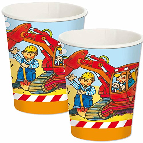 8 Gobelets * Pelle & chantier * GOBELET en carton pour anniversaire ou fête de la devise//fête d’anniversaire enfant Bob Travailleurs de la construction Bricoleur Gobelets