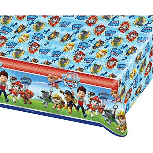 Cette nappe en plastique est sous licence officielle Pat Patrouille. Mesurant 120 x 180 cm, elle couvrira une grande table danniversaire. A dominante bleu ciel, des imprimés décussons avec le portrait des membres de la désormais célèbre patrouille de chiens sont parsemés.Une frise rouge entoure la nappe et tous les amis de la PatPatrouille sy retrouvent pour fêter un anniversaire coloré avec votre enfant.La bande part en mission Anniversaire avec votre enfant et tous ses amis !Nappe plastifiée de 180 cm par 120 cm.