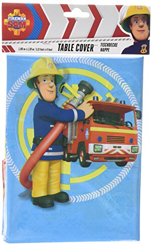 Cet article tiré de l’univers du dessin animé Sam le pompier a pour nom officiel : Amscan – 998153 – Nappe – Plastique Sam le Pompier, 120 x 180 cm.