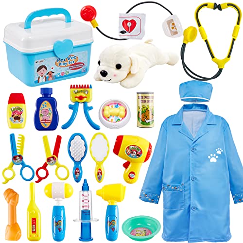 BUYGER Kit de Malette Veterinaire Enfant Jouet, Jeu d’imitation avec Peluche Chien Outils, Cadeau pour Garçons Filles