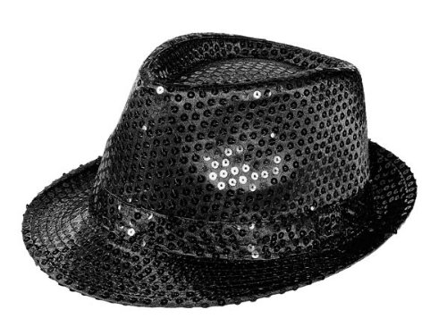 Chapeau de style trilby pailleté avec LED clignotant, paillettes accessoire deguisement fête soirée à thème disco ambiance spéctacle homme femme jeune moderne noir: TH-40 noir