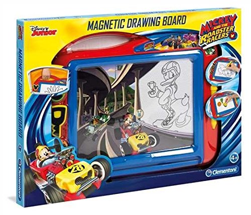 Ce jeu tiré de l’univers du dessin animé Mickey et ses amis a pour nom officiel : Clementoni Mickey Top Départ-Ardoise Magique-Jeu créatif-Disney, 15163.