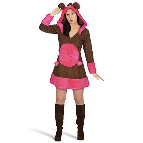 Costume Ourson Femmes Ours Robe Costume avec Capuche Décorative Mini Robe Brun, Rose, Robe de costume ourson duveteuse avec capuche pour femmes, Capuche avec oreilles d’oursons et pompons, Robe en optique satin avec fourrure synthétique, Longue fermeture éclair à l’avant, Parfait pour carnaval, les fêtes costumées ou à thèmeRobe de costume ourson duveteuse avec capuche pour femmes