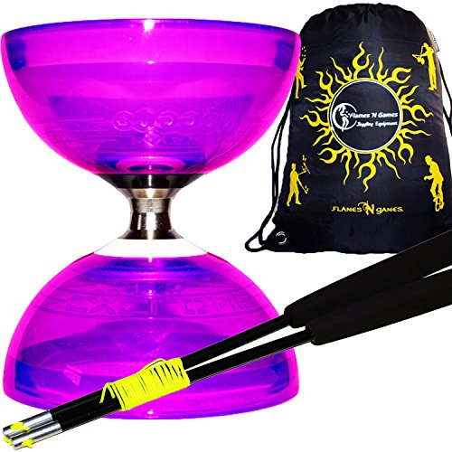 Cet ensemble est livré avec un Super-cool Flames ‘N Games TM sac de Voyage de qualité supérieure à cordon en tissu de diabolo qui a une Flames N Games design unique et exclusif d’impression et qu’il s’adapte confortablement 2-3 diabolos, accessoires et quelques autres accessoires de jonglerie.