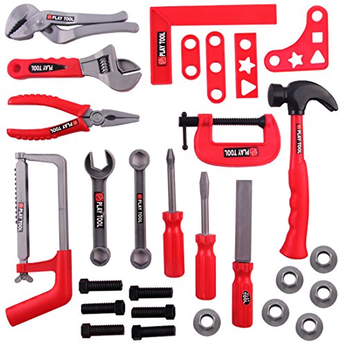 CONTENU: Tout ce dont votre enfant aura besoin pour devenir un petit bricoleur est dans cet ensemble! Avec 28 accessoires inclus : un marteau, une clé, une scie à main et une clé à écrous, cela gardera votre enfant diverti pendant des heures.