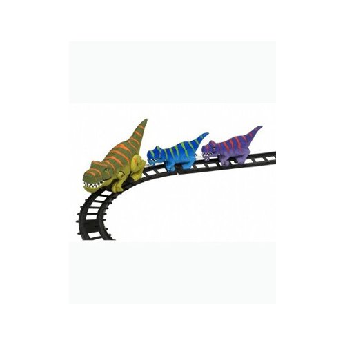 One motorized Tyrannosaurus Rex engine and two dinosaur cars linked together. Easy track assembly snaps together. Track Dimensions: 13 W x 21 L. Dinosaur Dimensions: 6.5 L x 3.75 H. Battery Powered: 1 AA NOT INCLUDED.One motorized T-Rex and two dinosaurs