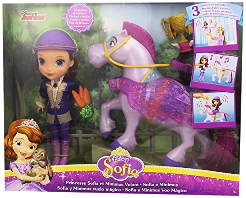 Les petites filles vont pouvoir vivre de grandes aventures avec cette magnifique Sofia qui porte le son habit de cavallerizza du programme et Minimus avec ses ailes scintillantes qui bougent avec lui.