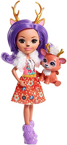 Let danessa deer doll and her deer friend Sprint enchant you The Enchantimals dolls are lovable characters who share a special bond with their animal friends they re always together and they look alike too the six inch doll comes with Sprint her deer friend so cute with pretty antlers and sweet furry detail Danessa deer doll wears a colourful outfit that matches her quiet nurturing personality it has a colourful floral print on the bodice and removable skirt and furry trim on the shoulders Her shoes add whimsy and antlers Poke from her rooted purple hair she even has deer markings on her face Kids will love recreating the special bond these friends share and celebrating a world where caring is our everything Collect them all to build out a world of Enchantimals and tell enchanting stories of your own each sold separately subject to availability includes Enchantimals Danessa deer doll wearing fashion and accessories and Sprint deer friendCette adorable poupée de 15 cm et son animal sont inspirés du monde d’Enchantimals, un lieu magique au cœur de la nature.