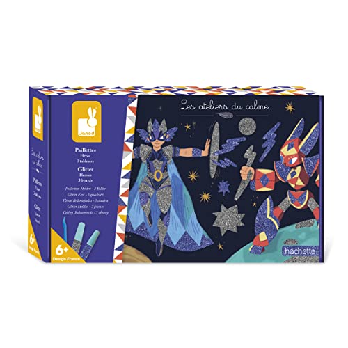 CARACTÉRISTIQUES : Ce jeu Janod contient 3 tableaux autocollants, 1 spatule, 2 tubes de paillettes (bleu, argent), 1 livret d’instructions avec les modèles. Durée : env. 30 minutes par tableau. Coffret d’activité manuelle idéal pour enfants de 6 à 10 ans.