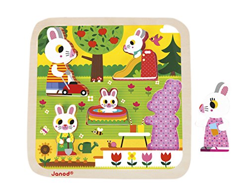Janod – Jouet en Bois – Chunky Puzzle Jardin Lapin Pâques Puzzle Écran 5 Figurines 1, multicolore