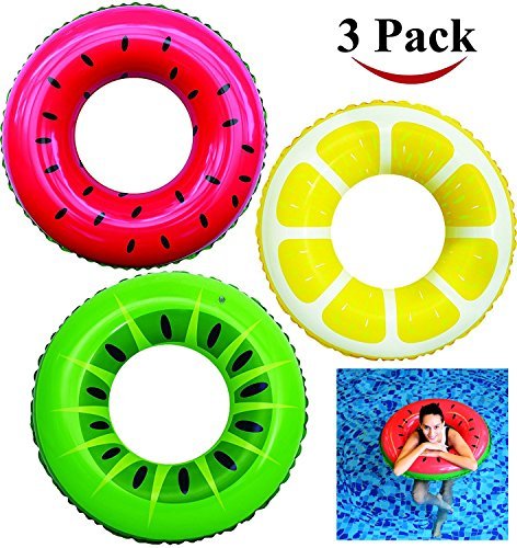Ce jeu tiré de l’univers du dessin animé Les kiwis a pour nom officiel : JOYIN Bouée Gonflable de Tube (Paquet de 3) avec Peinture de Fruits d’Été, Kiwi, Citron et Pastèque, Anneau de Natation, Radeau Gonflable, Décoration pour Fête de Piscine.