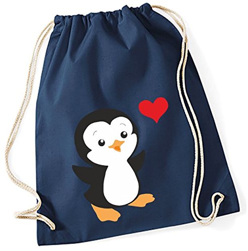 Jute Sacs Sac de gym Sac de sport Pochette en tissu Sac en coton avec cordon Cotton Sac de sport Sac à dos Pingouin (Motif 38, bleu marine)