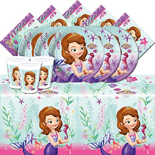 Ce jeu tiré de l’univers du dessin animé Princesse Sofia a pour nom officiel : Kit de fête complet Disney Princesse Sofia pour 16 personnes.