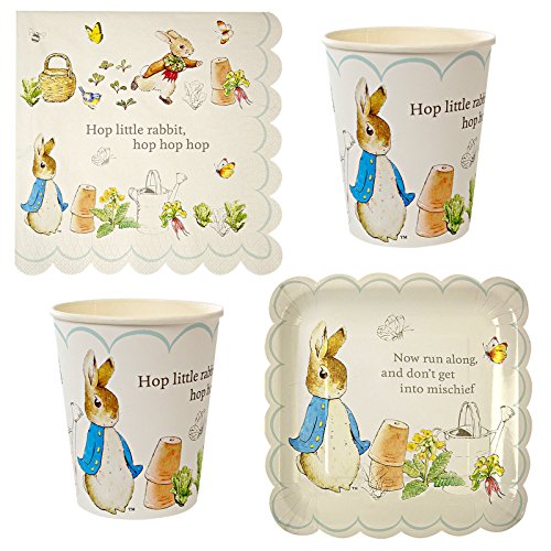 Ce produit tiré de l’univers du dessin animé Pierre Lapin a pour nom officiel : Kit Vaiselle Enfant anniversaire Pierre Lapin Version Économique 12 personnes.