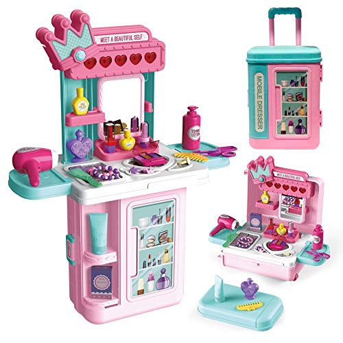 Ce jouet tiré de l’univers du dessin animé La maison de Mickey a pour nom officiel : LADUO 3 in1 Coiffeuse pour Enfants & Jouet de Table de Maquillage pour Filles, avec lumières, Son, Miroir, sèche-Cheveux,Les Filles Font Semblant de Jouets,Accessoires de Maquillage.