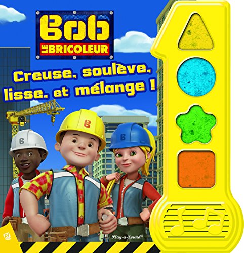 Le titre de ce livre tiré de l’univers du dessin animé Bob le bricoleur est : Bob le bricoleur – Creuse, soulève, lisse et mélange !.