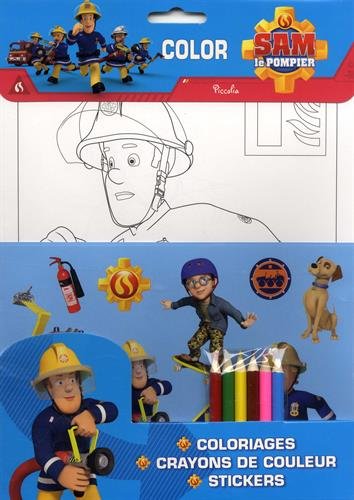 Le titre de ce livre tiré de l’univers du dessin animé Sam le pompier est : Color Sam le pompier: Coloriages, stickers, avec des crayons de couleur.