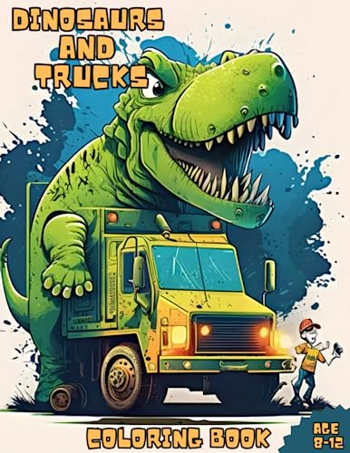 Livre Dinosaurs and Trucks Coloring Book: Coloring Dinosaurus and Trucks Book for Kids Age 8-12