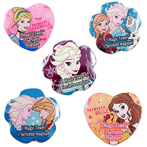 Ce lot de serviette est livré avec 2 serviettes assorties avec les personnages de Disney telles que Cendrillon, Belle, Minnie Mouse, et de la Reine des Neiges. Une fois que la serviette est en contact avec l’eau de toilette il étend aux dimensions de 29,8 x 29,8 cm ce qui en fait la taille idéale pour votre tout-petit pour rester propre avec.