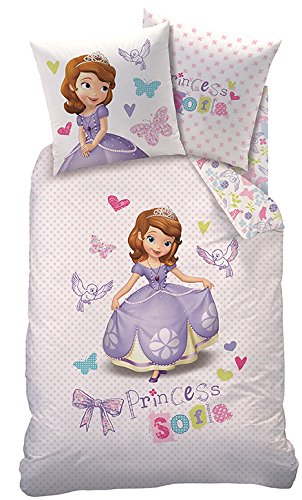 Livre Disney Princesse Sofia 042934 Parure de lit en flanelle de coton avec housse de couette 135 x 200 cm et taie d’oreiller 80 x 80 cm