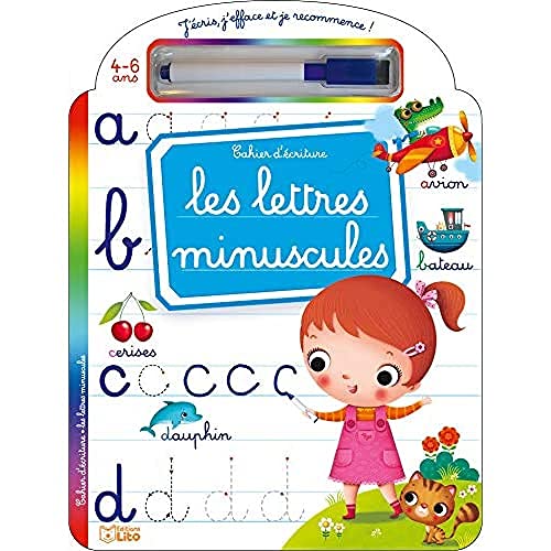 Le titre de ce livre tiré de l’univers du dessin animé Docteur la peluche est : J’écris, j’efface et je recommence: Les lettres minuscules – Dès 4 ans.