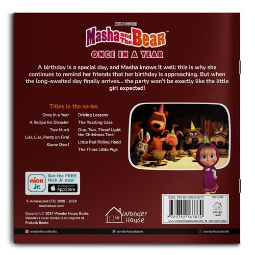Le titre de ce livre tiré de l’univers du dessin animé Masha et Michka est : Masha and the Bear Once in a Year.