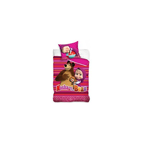 STN710098 – Housse de couette 140 x 200 cm + 1 taille d’oreiller 70 x 90 – Motif Masha et Michka.