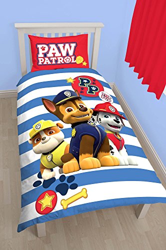 Le titre de ce livre tiré de l’univers du dessin animé Pat Patrouille est : Parure housse de couette Pat’Patrouille, avec taie d’oreiller, pour lit 1 personne.