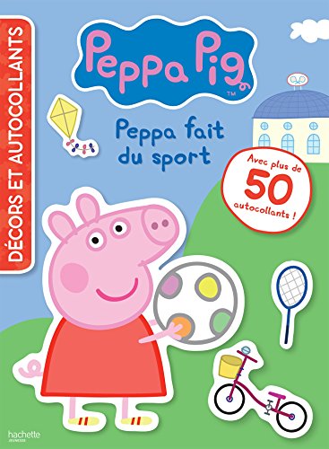 Le titre de ce livre tiré de l’univers du dessin animé Peppa Pig est : Peppa Pig – Décors et autocollants – Sport.