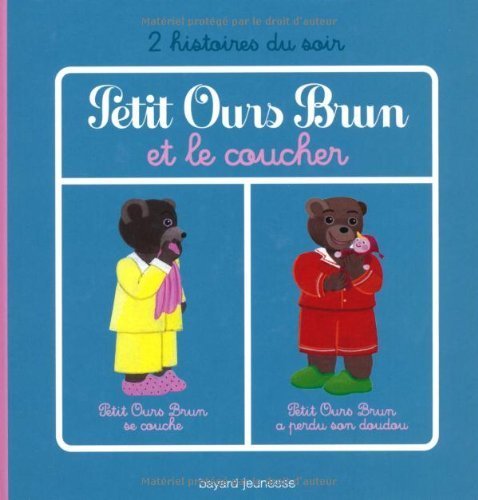 Le titre de ce livre tiré de l’univers du dessin animé Les aventures de petit ours brun est : Petit Ours Brun et le coucher : Petit Ours Brun se couche ; Petit Ours Brun a perdu son doudou de Marie Aubinais (11 mars 2010) Album.