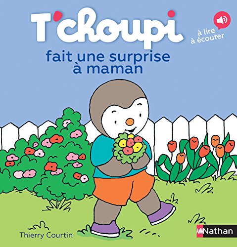 Le titre de ce livre tiré de l’univers du dessin animé Tchoupi est : T’choupi fait une surprise à maman – Dès 2 ans (21).