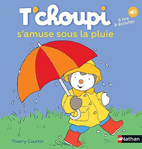 Le titre de ce livre tiré de l’univers du dessin animé Tchoupi est : T’choupi s’amuse sous la pluie – Dès 2 ans (08).