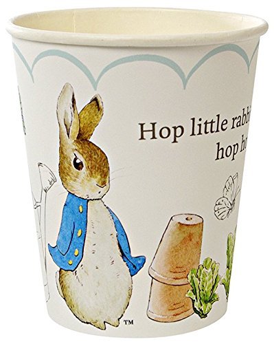 peter rabbit Ces gobelets sont décorés avec des illustrations classiques de beatrix potter, conjointement avec les ne jamais oublier la ligne : petit lapin, hop hop hop hop. gobelets avec perles coquillage.Lot de 12 gobelets en carton de la tasse : 9 oz