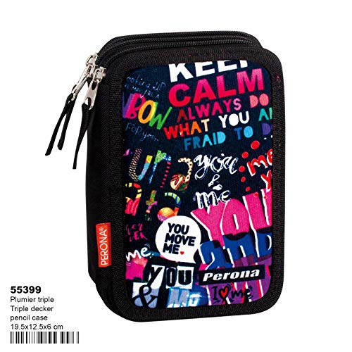 Trousse triple Perona plumier de trois étages Perona avec 44 pièces de matériel scolaire se compose des éléments suivants : 18 crayons de couleur 18 feutres de couleurs 2 crayons 1 gomme 1 taille-crayon 1 loupe 1 règle de 15 cm, 1 crayon de graphite produit Perona Dimensions : 12.50 x 19.50 x 6